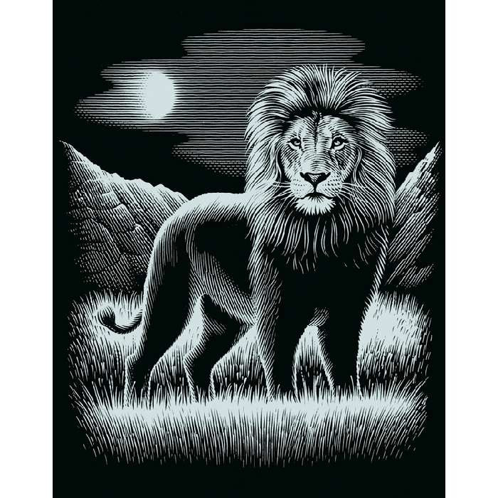 1 ezüst képkarcoló (kb. 20 x 25,5 cm), 1 karcoló kés, 1 gyakorló lap