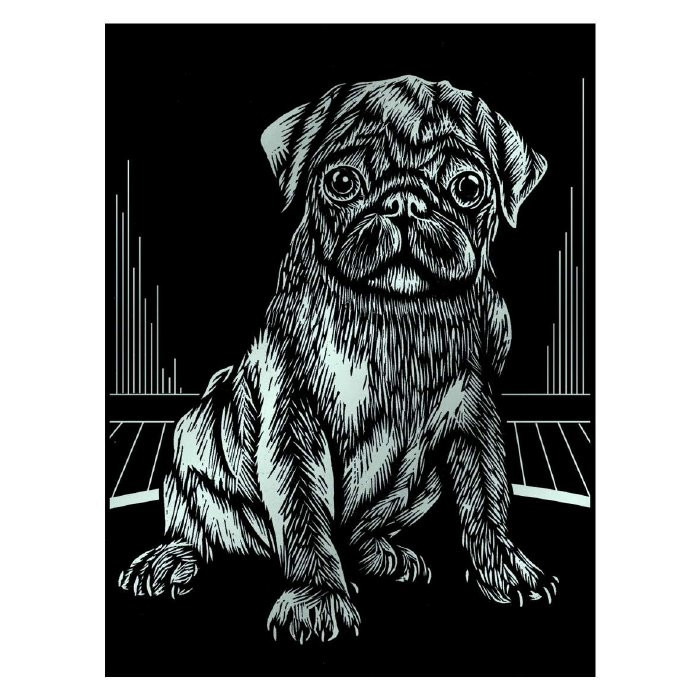 1 ezüst képkarcoló (kb. 20 x 25,5 cm), 1 karcoló kés, 1 gyakorló lap